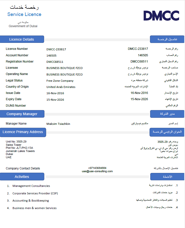 Бизнес Бутик на рынке ОАЭ с 2016 года.